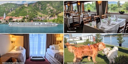 Flussfahrten für Sie MIT Ihrem vierbeinigen Liebling ! Auf Mittelklasseschiff geniessen Sie traumhafte Landschaften, feines Essen und dies alles zusammen mit Ihrem treuen Vierbeiner. Regelmässige Halte, eine Hundewiese auf dem Oberdeck tragen den Bedürfnissen Ihres Lieblings Rechnung und lassen ihn die Flussfahrt ebenso geniessen wie Sie es tun werden.